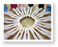 初めてトウシューズを履いた生徒たちがあまりにも嬉しそうだったので、ジュニアBクラス全員で写真を撮ってみました。