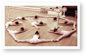 ジュニアAクラスのレッスンを始めようとしたところ…こんなに可愛い柔軟体操をしていました。